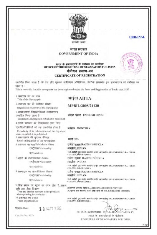 Govt. Reg. Certificate